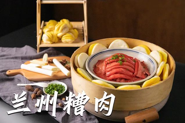 兰州糟肉是一道特色传统名菜,肥而不腻、艳红如火,越嚼越香,越嚼越鲜美。蒸好的糟肉,颜色很是喜庆,一片肉配一杯酒,或者夹在荷叶馍里,就是老兰州人口中的年味。