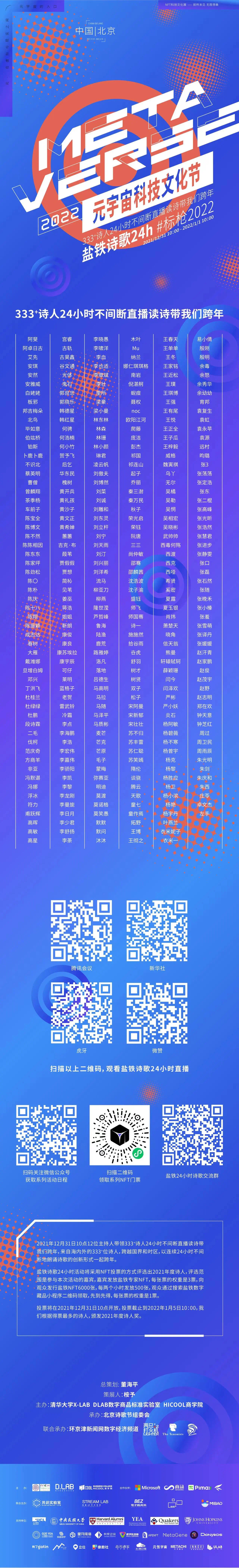 这场名为“盐铁诗歌24h——标枪2022”的诗歌朗诵,有超过300位诗人参与,跨越8个时区,从北京时间2021年12月31日上午十时持续至2022年1月1日上午十时,最终在各平台总观看量超过了150万人次。