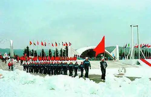 1980年第13届冬奥会,中国体育代表团正式亮相冬奥竞技赛场 新华社记者夏道陵摄