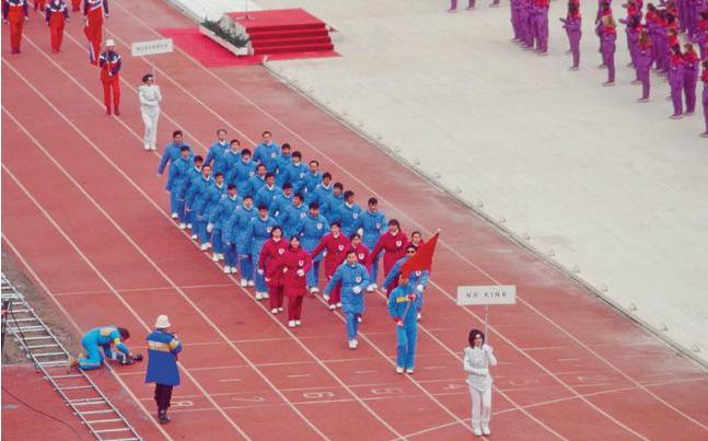 1984年,中国体育代表团在萨拉热窝冬奥会开幕式上