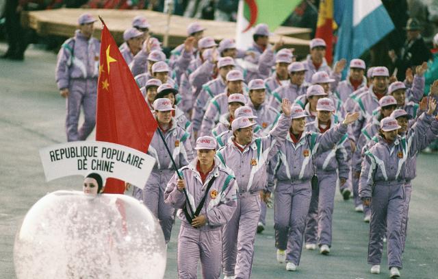 1992年,中国代表团在法国阿尔贝维尔冬奥会开幕式上