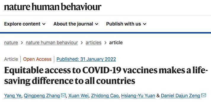 论文题目:Equitable access to COVID-19 vaccines makes a life-saving difference to all countries
