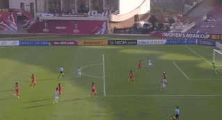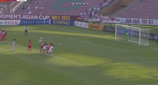 上半场补时阶段,中国队姚凌薇禁区内手球犯规,主裁观看VAR之后判罚点球,韩国队池笑然右脚主罚命中,韩国队2比0领先结束上半场。