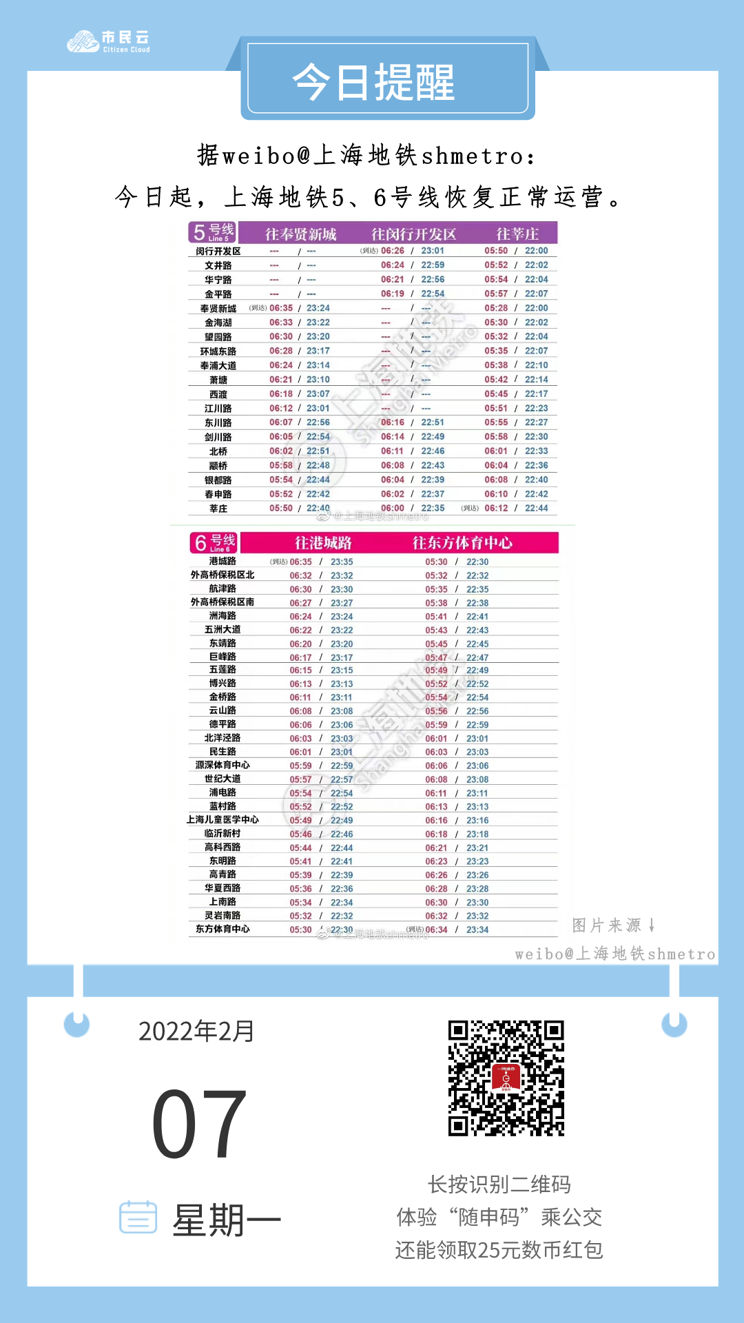 【市民云资讯】今起!这两条地铁线路恢复运营