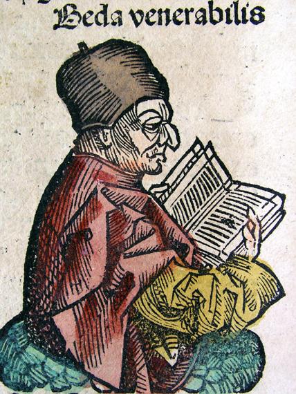 ▲《英吉利人教会史》作者比德古英语和中古英语抒情诗的生成,关系到的正是这样一个从“歌谣”到“羊皮”的文本生成问题,盎格鲁—撒克逊人使用书面文字极大地受到6-7世纪间基督教逐渐传遍不列颠岛的影响,基督教口头传统(oral tradition)与书写传统(written tradition)是紧密结合在一起的,当然就导致了最早的抒情诗大多是与宗教相关的。后来到阿尔弗雷德大帝复兴之后,在古英语成为一门几乎人人都可以的使用它来写作的语言后,那些异教的旧神就又都复活了。古英语诗歌最大的特点是押头韵,同时有一个行间停顿,类似于在文本里打一个结,就像今天的休止符,可以用来帮助记忆。而事实上,这样的技巧其实是一种口述技巧,即使已经变成书写文本了,它还是保留了当时的口述传统。