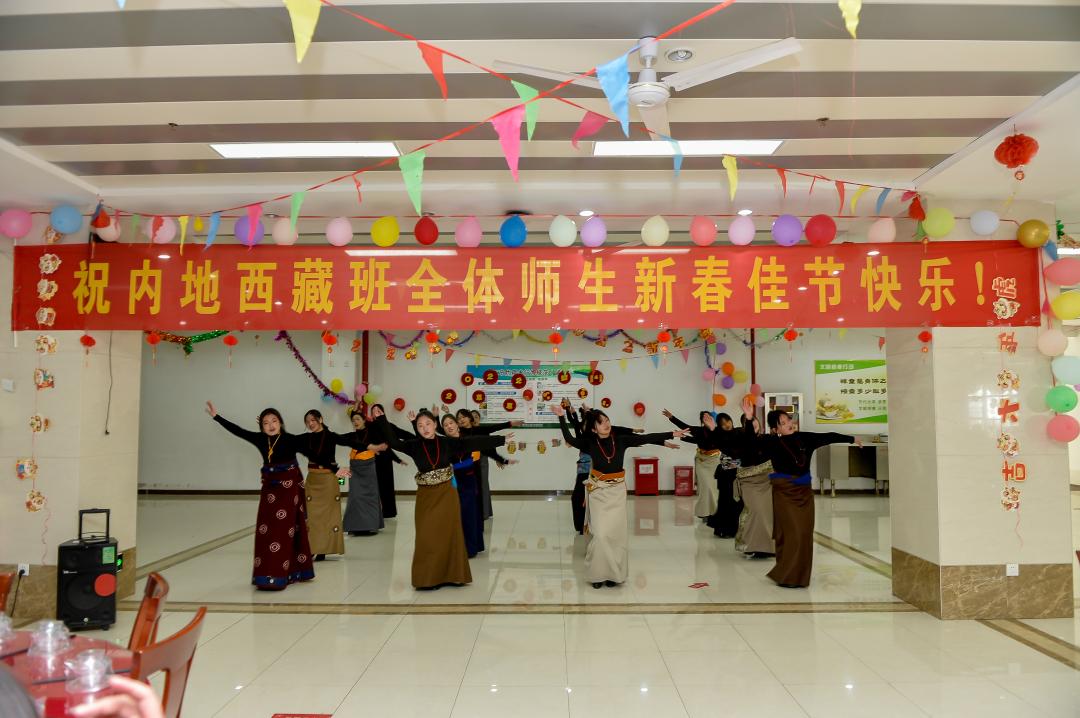 2月1日上午,虎年大年初一,学校领导来到内地西藏班宿舍,为学生们送上新年祝福。藏族学生穿上民族盛装,为老师们献上节日哈达。