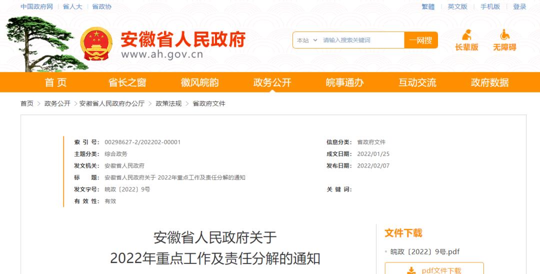 原标题:《安徽2022年重点工作及责任分解清单发布!》