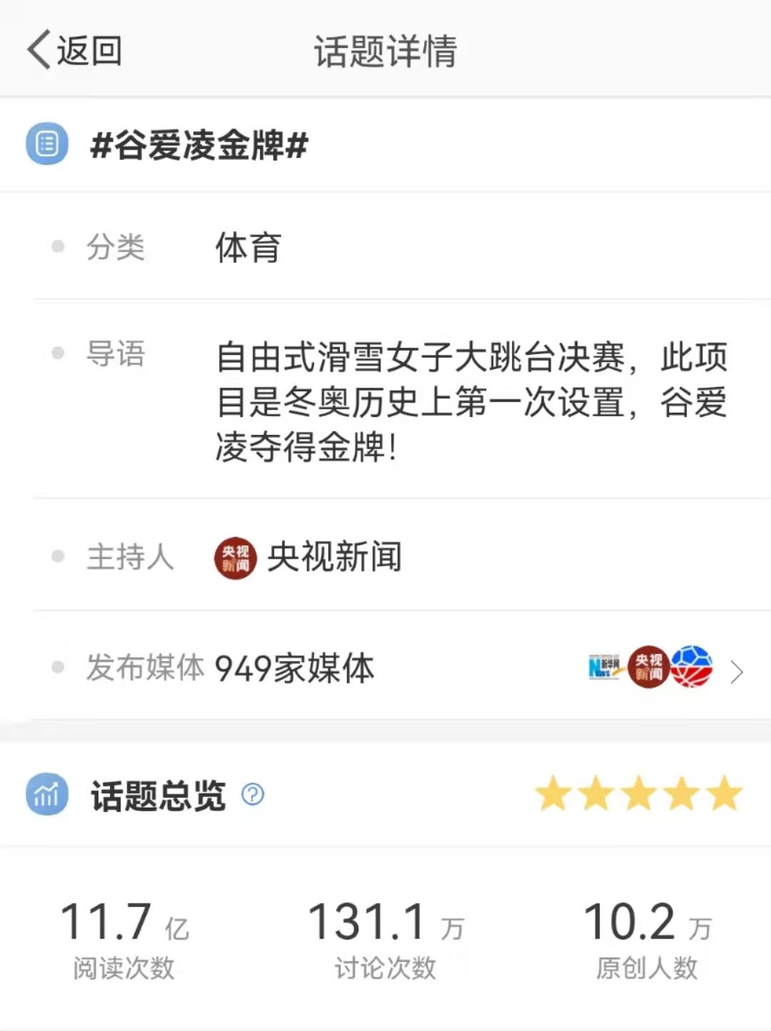 这种热度确实十分罕见。另一边,谷爱凌的微博也成为了网友们表示祝贺的根据地。这条“祝贺谷爱凌夺冠”的系统微博到目前为止,共收获了18.1万次转发和172次点赞。