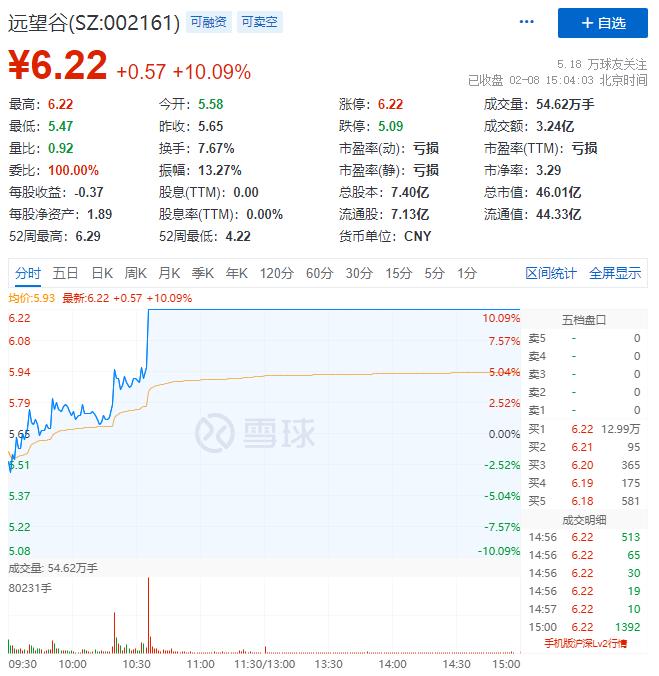 有网友发现,一支叫做“远望谷”的股票实现了涨停。雪球网显示,这支自冬奥开幕后就一路看涨的股票最终在今天上午10:37,也就是谷爱凌正在进行决赛的同时,达成“涨停成就”,涨停时价格为每股6.22元。