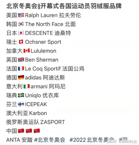 本次冬奥会上,最先出圈的“带货产品”,是开幕式上各国运动员穿的羽绒服。