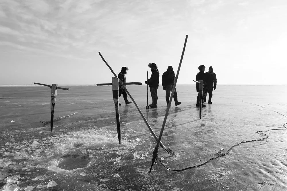“冬季湖面冰封之后,鱼儿通常成群聚集。鱼的聚堆带来水的涌动,冰面上的雪便微微起鼓,通过冰面的变化来分辨鱼群的位置。”张文说,不止于此,还得会观冰的颜色、听冰的声音,看“鱼花”等等。