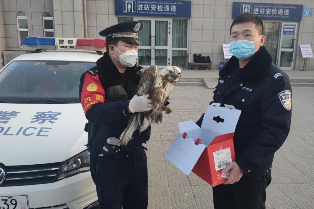 2月7日下午,阿克苏地区阿克苏市公安局食品药品环境犯罪侦查大队接到乌鲁木齐铁路公安局库尔勒公安处阿克苏站派出所民警王龙龙求助,称在阿克苏站轨道旁发现一只受伤的野生动物,需要紧急救助。