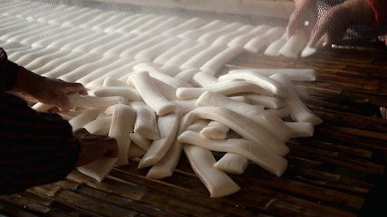 水磨工艺,使米浆更加细腻;手工搡捣,使年糕富有韧性。