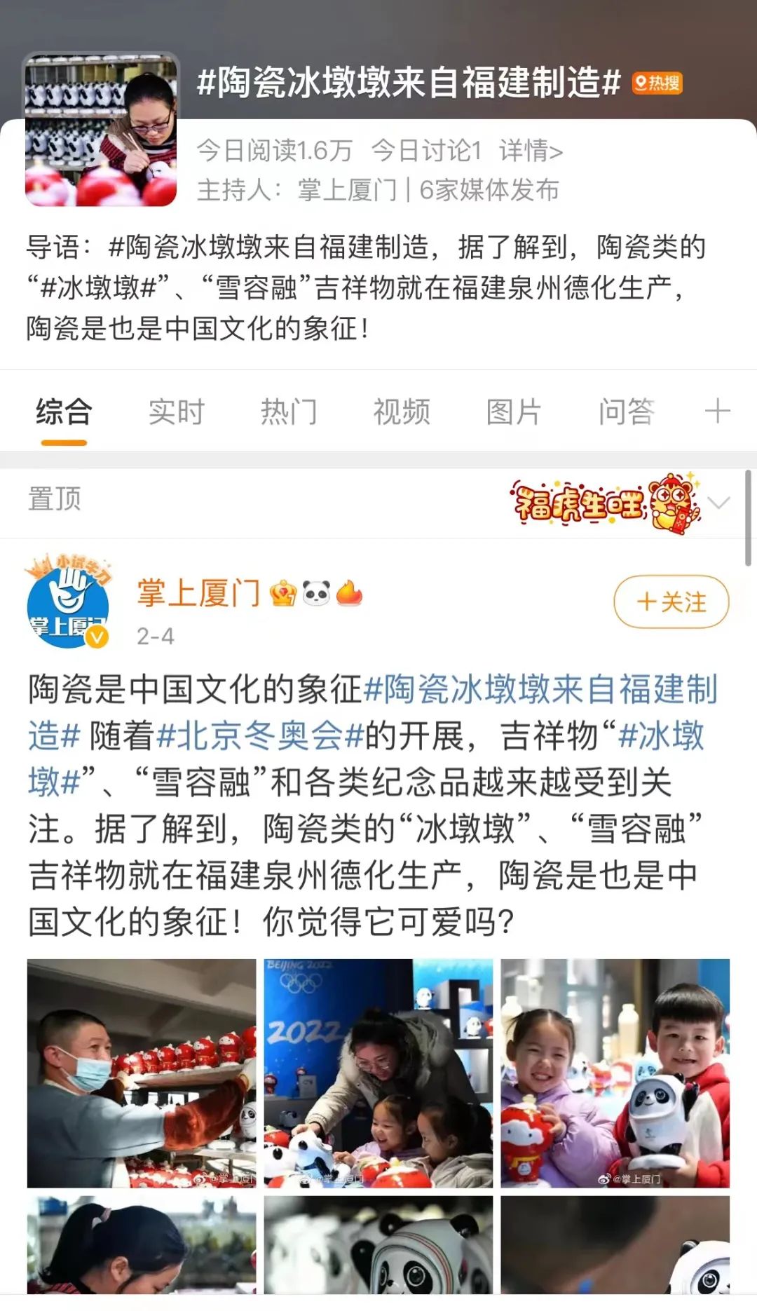 △陶瓷冰墩墩来自福建制造。/微博截图
