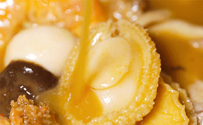 这道菜所用食材众多,工序复杂,光是处理原材料就需要花费几天的功夫。厨师通过煎、炸、熬、炖等工序对食材逐一进行烹调,放入坛中加高汤和福建老酒以文火煨制,炖出来的汤汁鲜亮剔透,把山海的味道融合得恰到好处。
