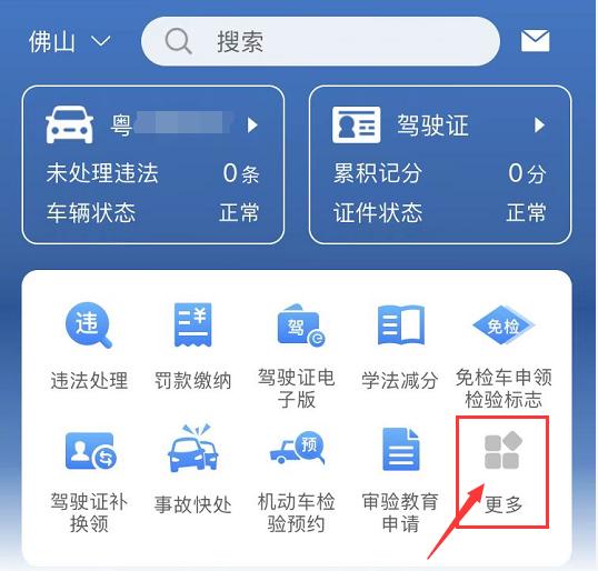 登录“交管12123”手机APP,点击主页面的【更多】。