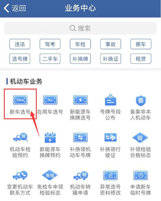 选择注册地点击机动车业务中的【新车选号】,选择注册省市,并点击【确认信息】。