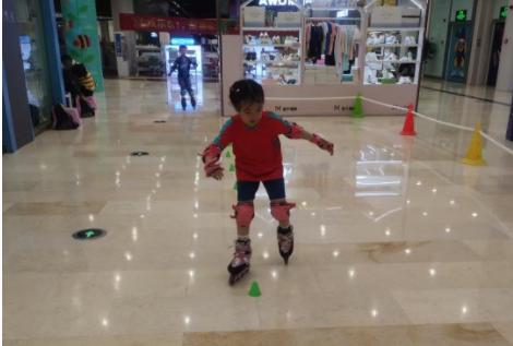 轮滑:四岁半的娃加入了轮滑的队伍,娃胆大,老师心细。一个暑假下来,学得有模有样。两个暑假的学习成果,让我们可以在冰上滑行,偶尔户外穿一双轮滑,也能滑上几圈。