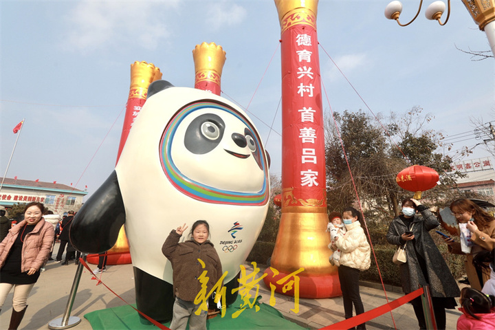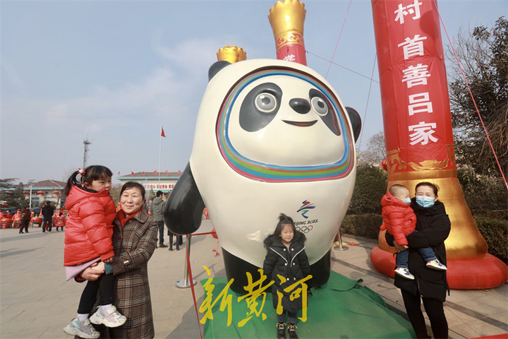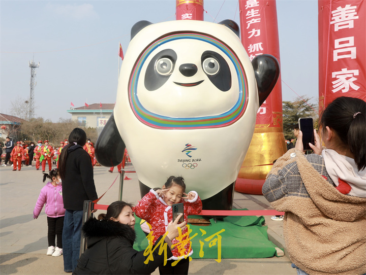在“冰墩墩”与“雪容融”跟前,原本人流稀少的大街热闹非凡,拍照留念的市民络绎不绝,大人,小孩,老人都争相与“偶像”来一个亲密接触,摆出各种可爱的动作与表情,留下美好瞬间。“我是在网上看到这里有“冰墩墩”和“雪容融”的,这不带着孩子和老人过来看看。”在吕家村委会前,李女士抑制不住心中的喜悦,拿着手机不停地拍照,本来想在网上购买“冰墩墩”,但是太紧俏了,一直也没买到。没想到今天看到这么大的实物,真是很意外。