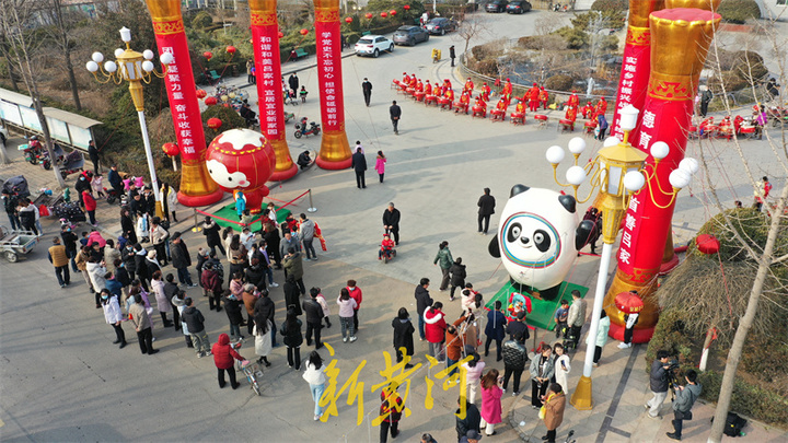 这两天,顶流“冰墩墩”彻底带火了章丘区吕家村,村委会门前摆放的巨型“冰墩墩”和“雪容融”引来大批市民打卡。不少外地市民专程驾车赶来与“偶像”合影。
