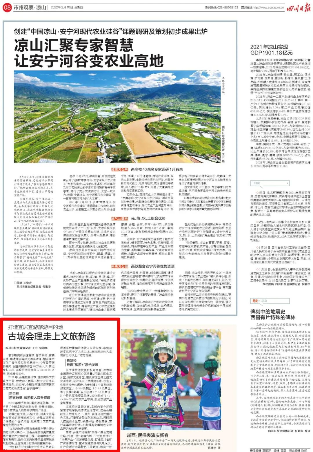 2021年,会理撤县设市,继续突出文旅首位产业,并成功入围第三批天府旅游名县候选县。2022年,会理如何继续擦亮国家历史文化名城这块“金字招牌”?