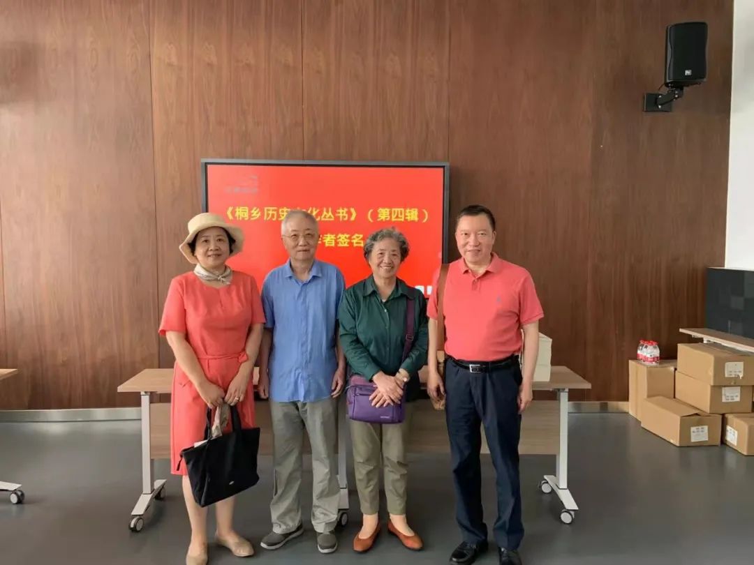 2020年7月,严独鹤后人与孔另境后人在《桐乡历史文化丛书》首发仪式上(自左至右依次为孔明珠、严祖佑、孔海珠、严建平)杂志编辑:姜龙飞