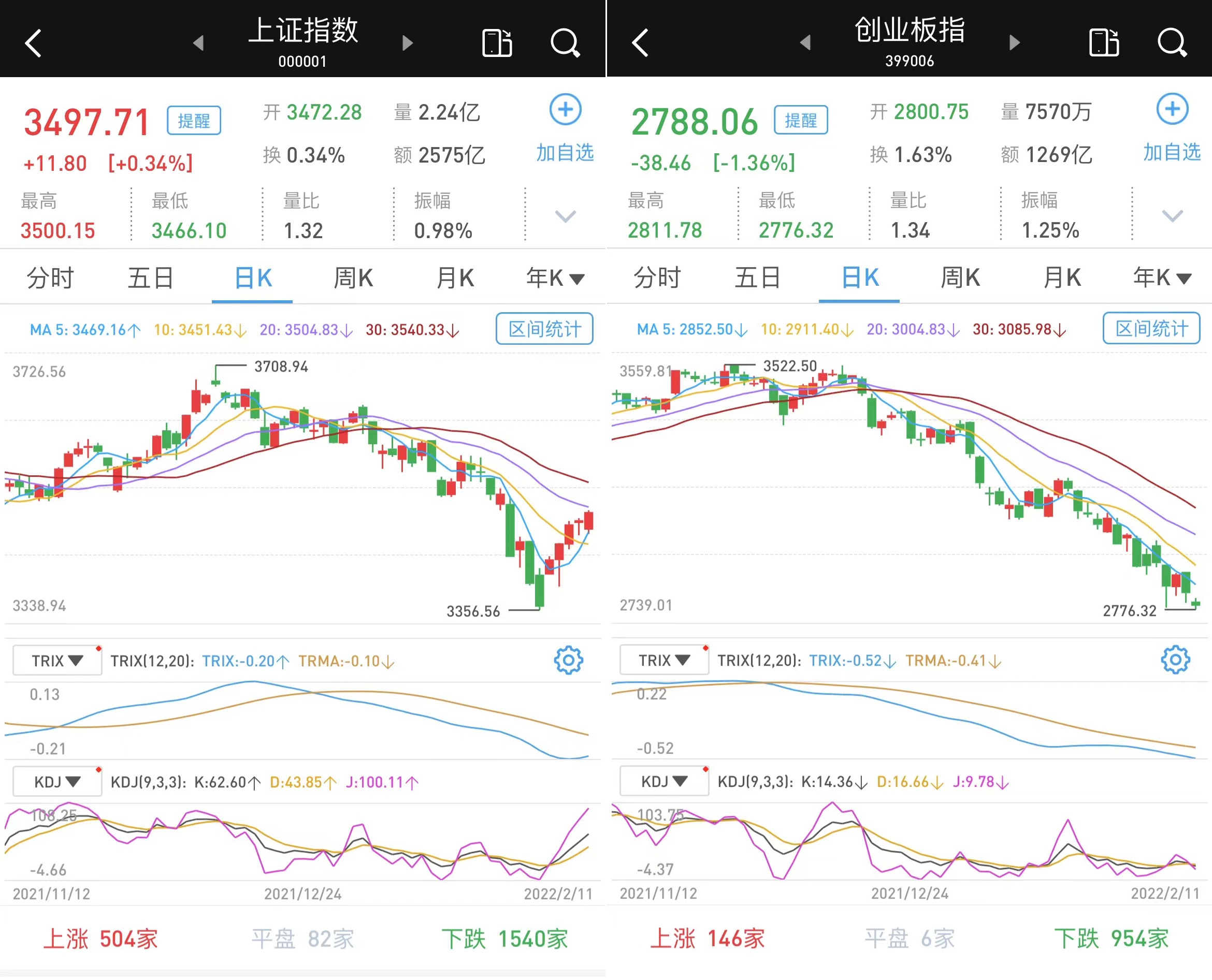 在社融超预期的情况下,大金融早盘强势护盘,调整一年有余的保险股扛起领涨大旗,银行股跟进,两桶油全力配合,沪指半日微涨,一度收复3500点关口,但个股呈现普跌的格局。截至2月11日午间收盘,上证综指涨0.34%,报3497.71点;科创50指数跌0.93%,报1177.18点;深证成指跌0.31%,报13391点;创业板指跌1.36%,报2788.06点。