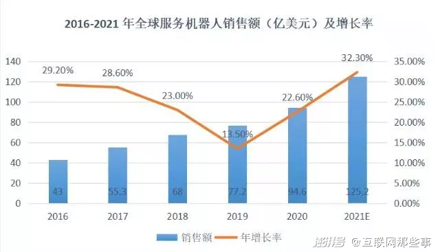 根据IFR(国际机器人联合会)数据,预计2021年全球服务机器人市场规模约为125.2亿美元,2022年市场规模将超过工业机器人,2023年全球服务机器人将突破200亿美元。