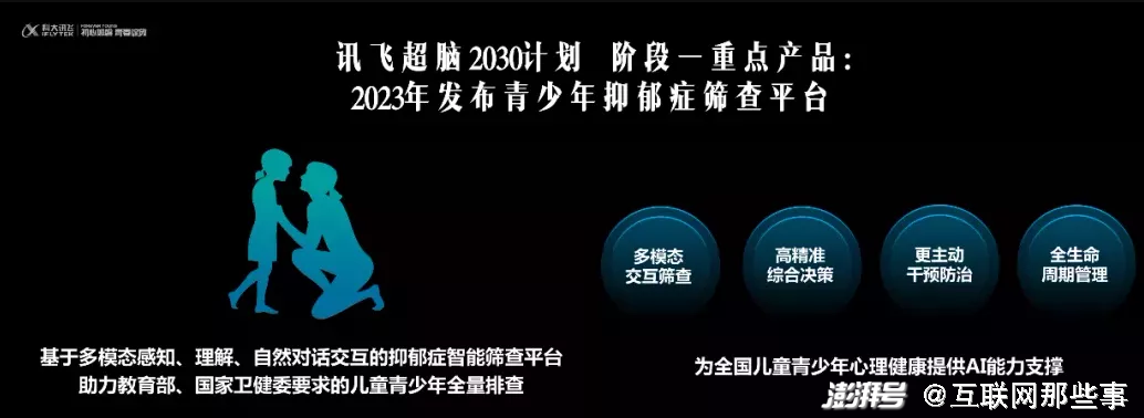 据了解,“讯飞超脑2030计划”中的青少年抑郁症筛查平台,基于多模态感知,理解自然对话交互,用AI技术为儿童青少年的心理健康提供支持,这对人类的未来意义深远!