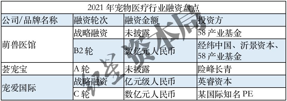 宠物医疗为宠物经济中资金与技术门槛最高的细分领域,涵盖宠物诊疗、宠物药品、宠物疫苗三大类。2021年宠物医疗行业共发生5起融资,累计融资金额达到7亿元。从融资金额来看,2021年宠物行业融资过亿元的企业,主要都集中在宠物医疗领域。