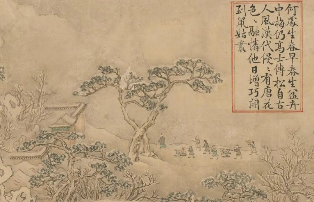 景山、琼岛都位于紫禁城的北边,再往南走就进入了北京城,我们也就很难再看见乾隆爷描写自然生春的诗词,唯有一首,乾隆爷描写梅花松柏,梅花迎雪傲放,松柏青翠挺拔,是冬日中难得的春色,因此乾隆爷也不惜笔墨:“何处生春早?春生盆卉中。梅仍高士传,松自古人风”。