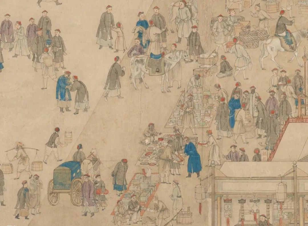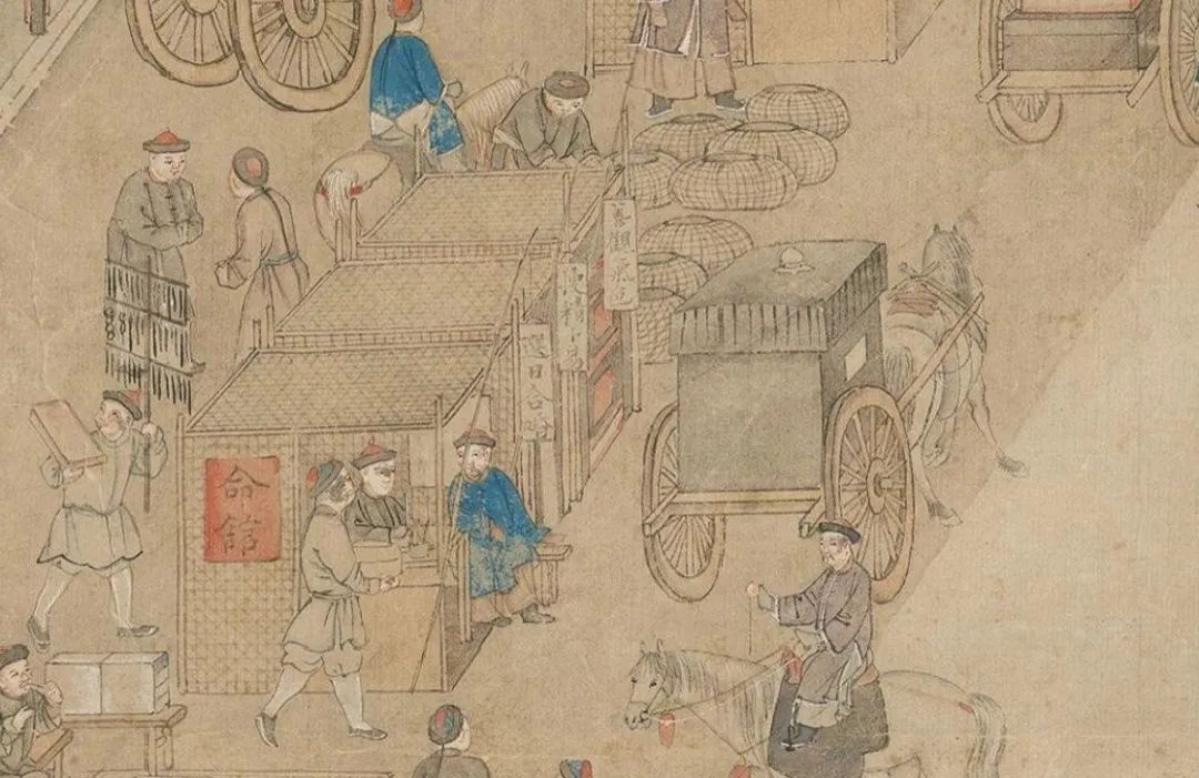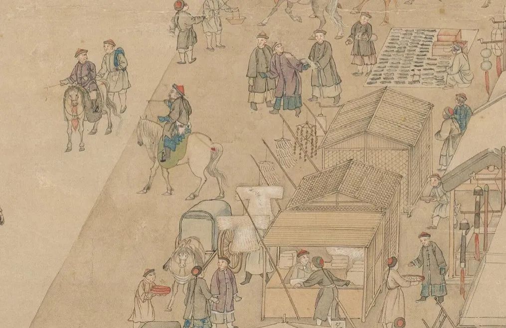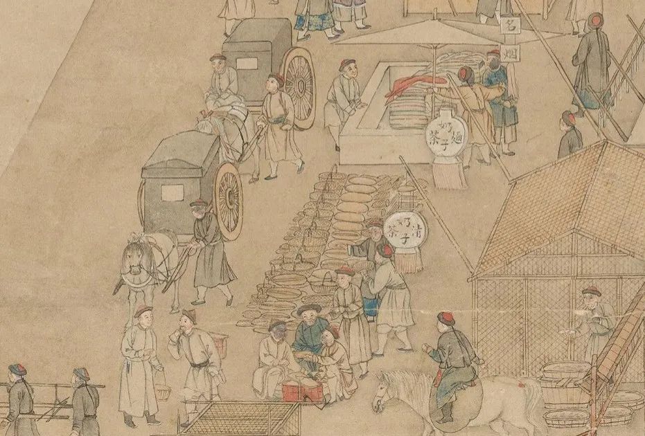 正阳门外除了正经的店铺之外,最多的是各式各样的小摊小贩、引车卖浆之辈,小贩之中有卖书的,有卖衣物的,有卖鸡鸭鱼肉的,有卖碗筷的,还有卖奶茶的,还有算命的,可谓是应有尽有。