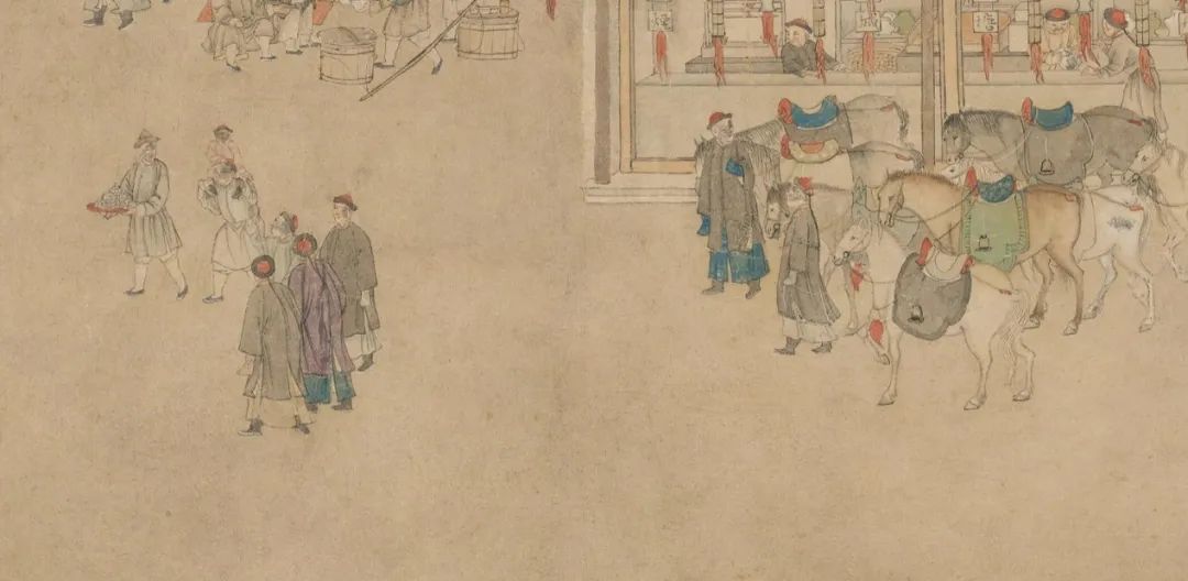 乾隆爷眼中的春意大概就是这些,但是二十首《生春诗》道不尽北京城内的春意,就像徐扬画中有说不尽的细节,春意其实就蕴藏在这些十分有趣的细节里。