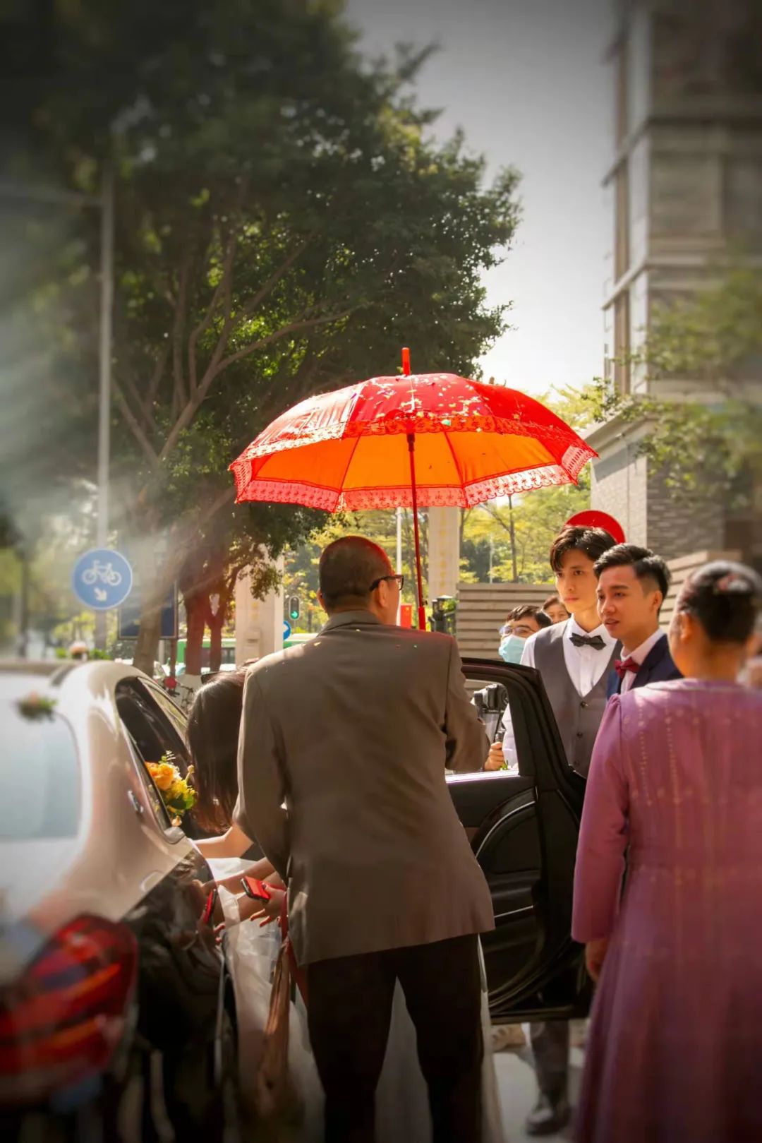 ⊙一对新人从楼房里走出来。A面与B面并不对立,归根结底,这是村落变城市之后,乡情的无形延续。