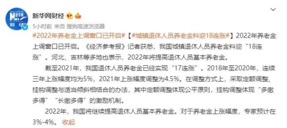 2022年养老金上调窗口已开启。获悉,我国城镇退休人员养老金料迎“18连涨”。