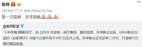 今年他监制了动画《全职高手》,未来还可能参与电影《阴阳师》的拍摄。