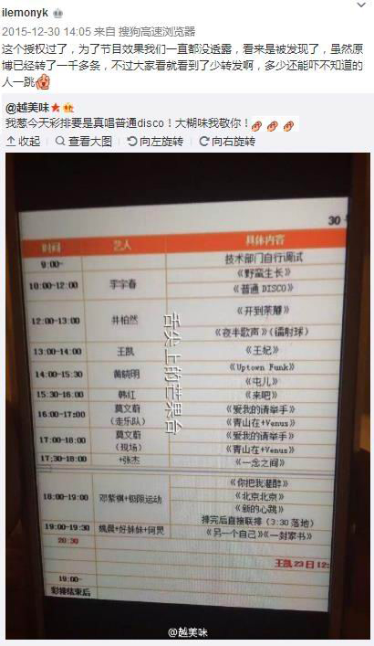 在2015年芒果台跨年晚会上,李宇春演唱VOCALOID神曲《普通DISCO》。原曲制作人ilem表示这是经过授权的演出,同好奔走相告,与有荣焉。