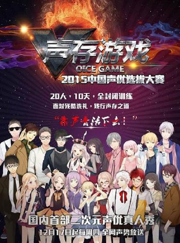 为发掘怀揣声优梦的年轻人,2015年底,搜狐视频上线了国内首档二次元声优真人秀《声存游戏》,由“被窝声次元”主办的第四届“声优魂”比赛层层选拔出20强选手,来到“声存游戏训练营”进行11天的考验。