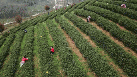茶园、绿树、樱花、远山......樱花浪漫,伴着千亩茶园的清香,触手可及,随山坡的蜿蜒,层次分明美不胜收。采春茶,品茶香