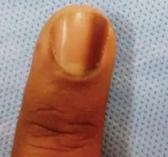 但指甲黑线出现黑色素瘤的几率相对较低,比较少见,研究显示占所有黑素瘤的0.7%~3.5%。
