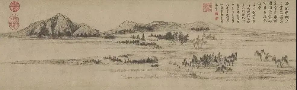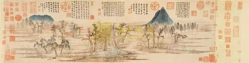 赵孟頫 《鹊华秋色图》其文亦风流冠绝,诗文为一代雄才,兼收并蓄,具婉约清新、流转圆韵、意蕴深远之格,自有奇瑰飘逸之致。
