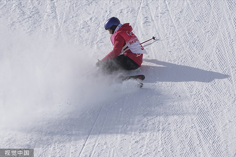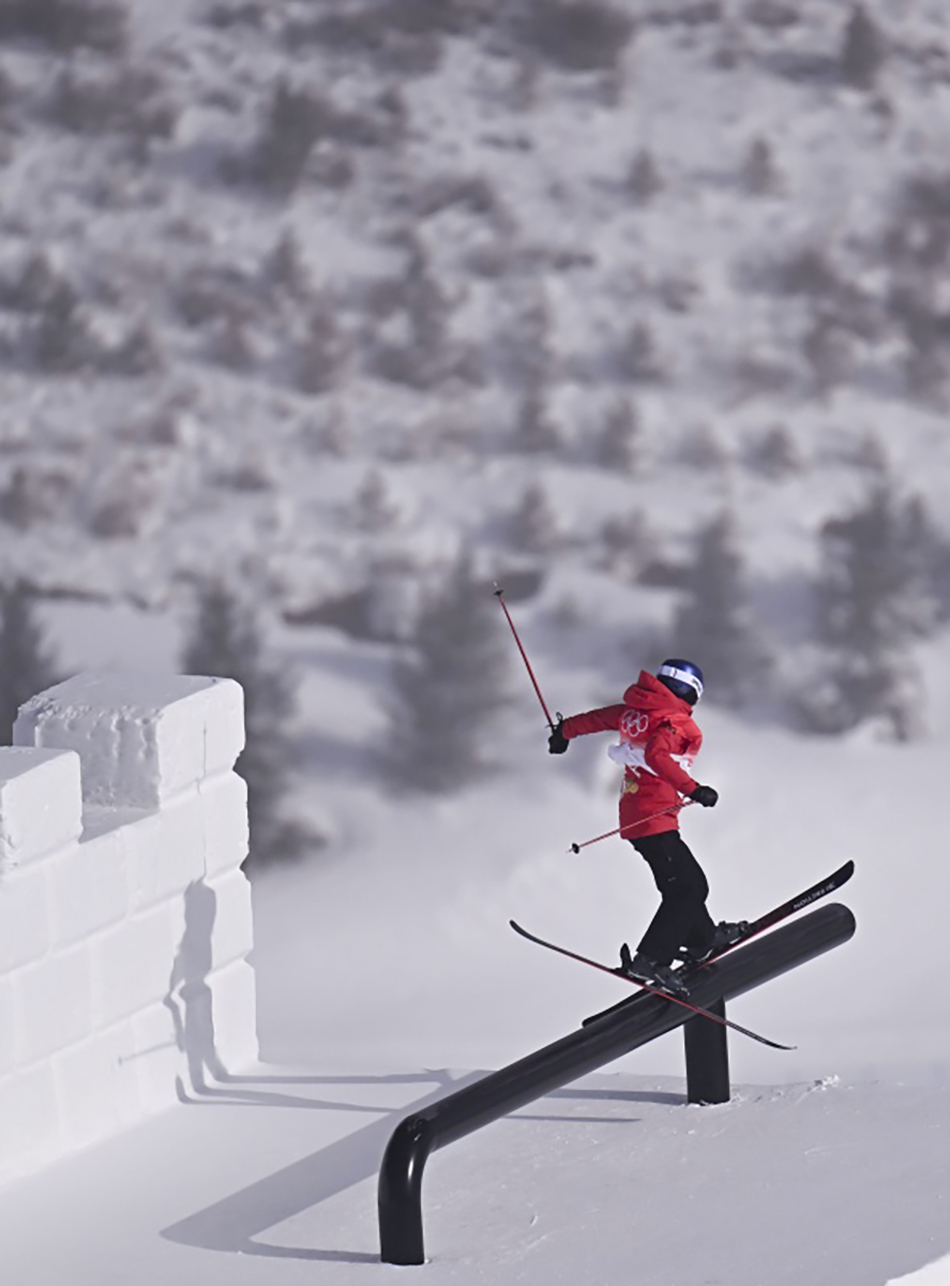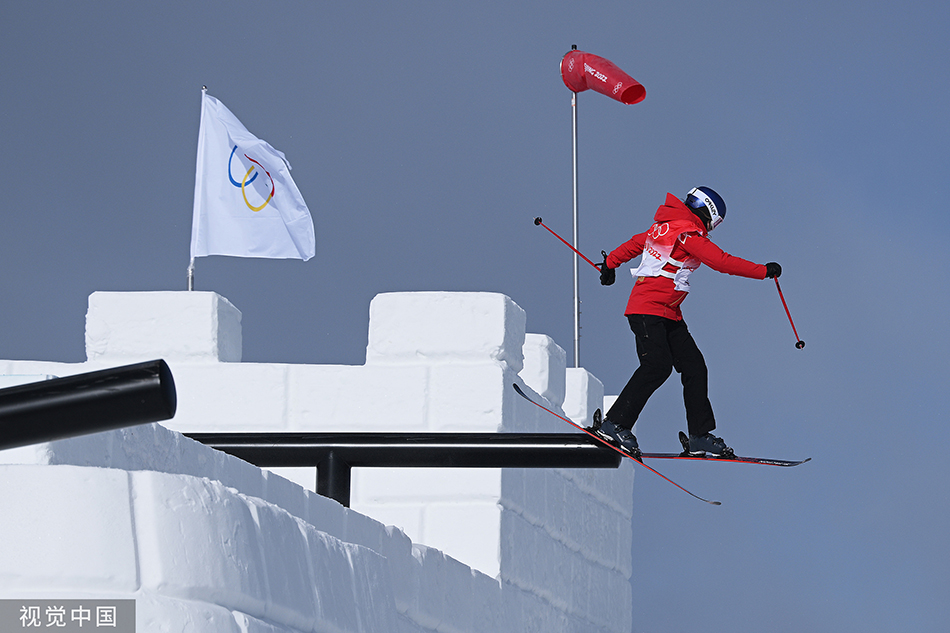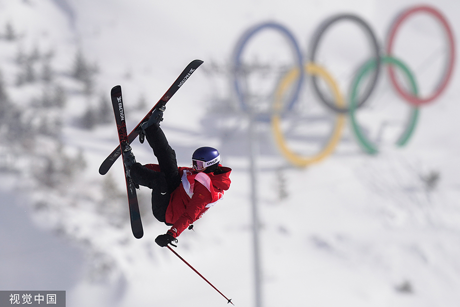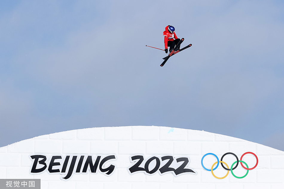 2月15日,河北张家口,比赛中的谷爱凌,动作潇洒帅气。