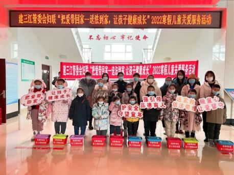 编者按:为深入学习贯彻党的十九届六中全会精神,按照全国妇联等12部门关于开展“把爱带回家—送法到家 让孩子健康成长”2022寒假儿童关爱服务活动的部署安排和黑龙江省妇联、佳木斯市妇联常态化开展寒暑假期儿童关爱服务活动工作要求,推动《中华人民共和国家庭教育促进法》落实落细,连日来,建三江管委会妇联积极联动各方资源,深入开展以思想引领、家教指导、安全保护、慰问帮扶为主要内容的关爱服务活动。建三江管委会妇联联动