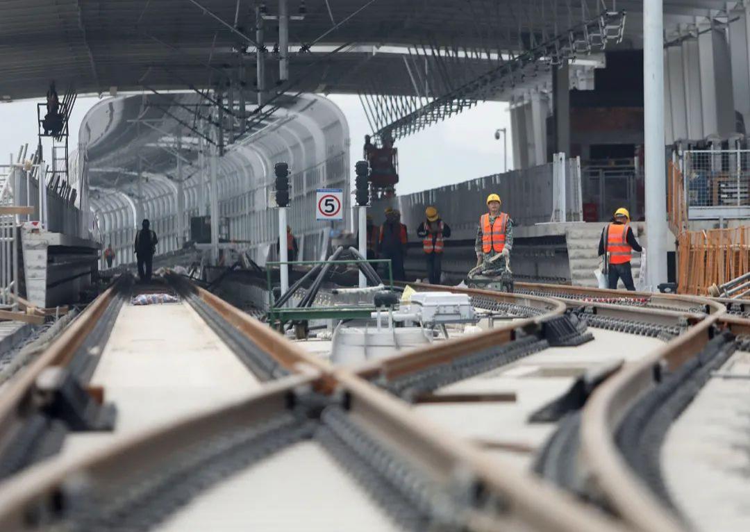 9号线二期工程铺轨现场。(重庆日报资料图)9号线二期全长约8公里,线路总体向北敷设,起于兴科大道至春华大道区间,止于花石沟站。目前,全线土建基本完成,同步开展装修工程、风水电安装、系统设备。