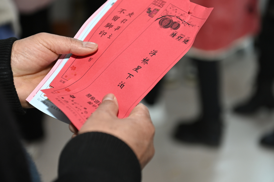 工作人员为居民验证谜底