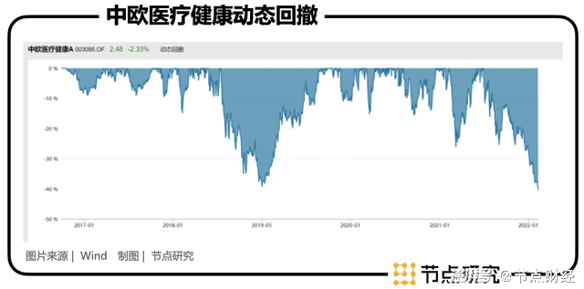再看最大回撤已至历史峰值-40.54%,从去年六月底开始刚刚收复失地的中欧医疗健康再度遇袭,情况急转直下,几乎没有给基民高位减仓的机会,基民痛苦指数可想而知。