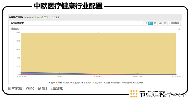 葛兰之所以被称作“医药女神”,当真把“医药”拿得死死的。之前我们分析过那么多基金经理,葛兰算得上是其中“最专一”的行业配置了。可以看到截至2021-6-30,葛兰在医疗保健板块的持仓占到了股票持仓的98.88%,而且从2017年第四季度开始更是一路上升。