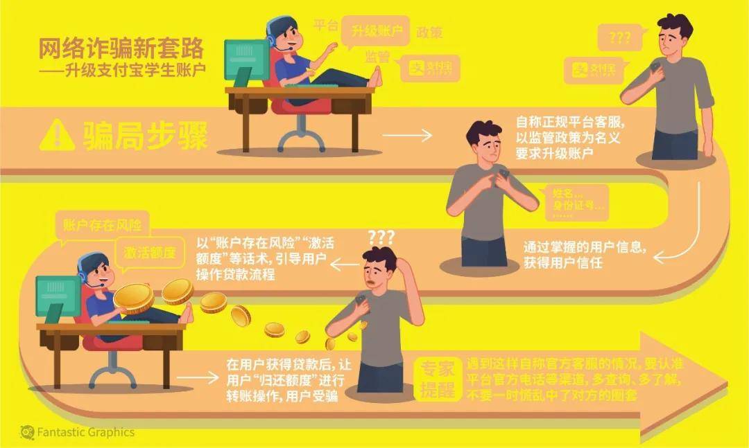 在这名“支付宝客服”飞快的语速中,我开始了注销学生账户的步骤。在他一步一步的耐心指导下,我开通了支付宝借呗、网商贷。其实,骗子口中的“注销学生账户”骗局就是让你把支付宝借呗、网商贷里的额度统统借出来,再提现到名下银行账户,最后转账到骗子指定的账户。