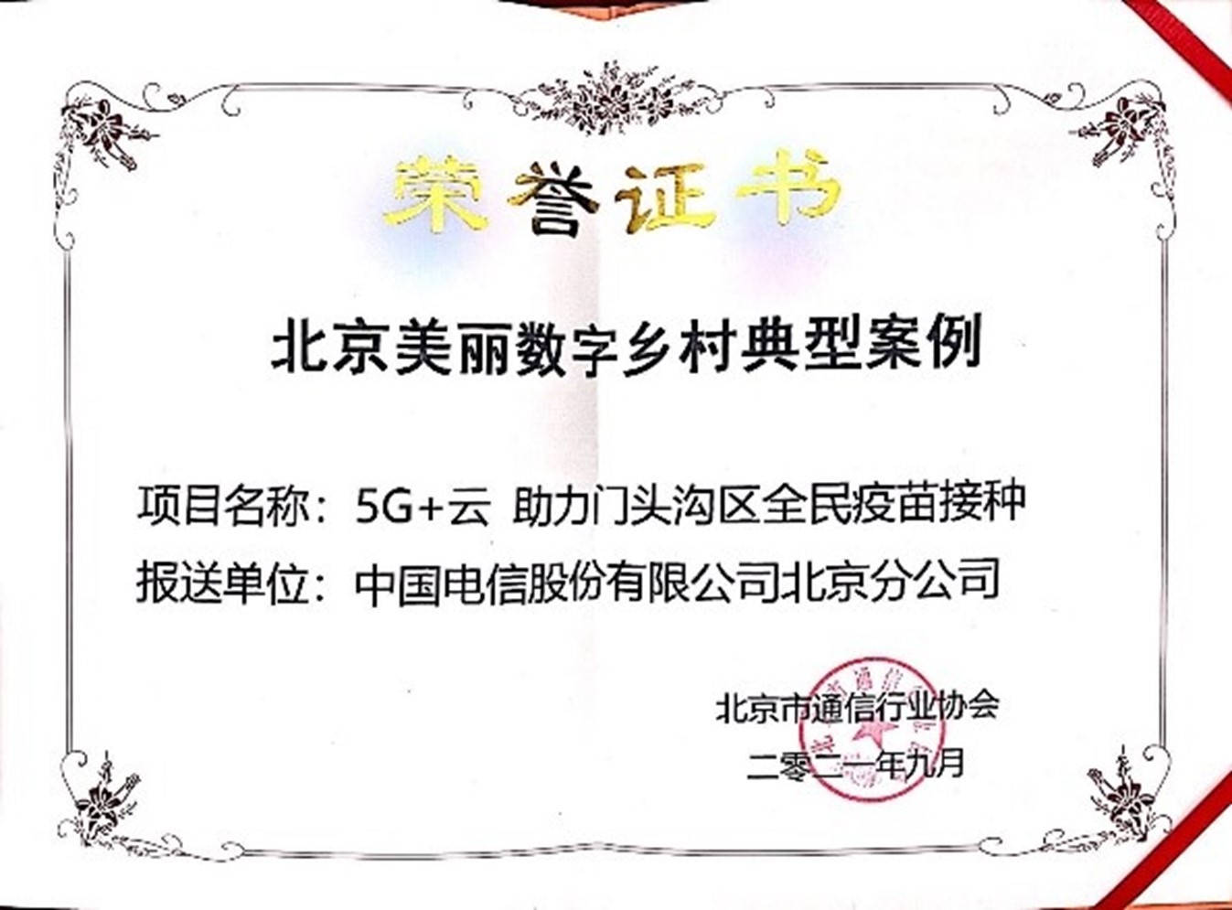 中国电信北京公司全民疫苗接种项目获北京美丽数字乡村典型案例称号