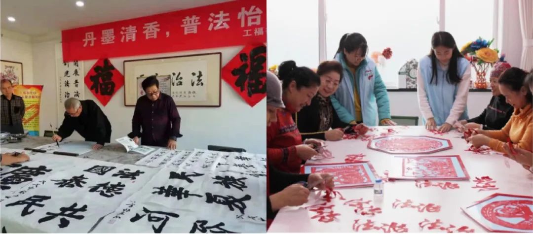 金沙窝社区:法治剪纸、普法对联迎新春小年当日,奎文区文联书法家、辖区知名书法家、书法爱好志愿者走进金沙窝社区,开展以“迎新春写对联 送温暖进万家”为主题的法治文化活动。志愿者们现场写法治春联,剪窗花、提前为社区群众送去浓浓的新春祝福。通过此次活动,不仅活跃和丰富了社区的法治文化生活,也让大家感受到了浓浓的年味。
